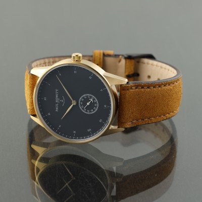 Diese Paul Hewitt Uhr hat ein Edelstahl Gehäuse mit einem Durchmesser von 38 mm und ist mit einem Armband aus Leder versehen. In der Uhr arbeitet ein Seiko Instruments Inc. Uhrwerk. Das Glas der Uhr besteht aus Sapphir - Glas.