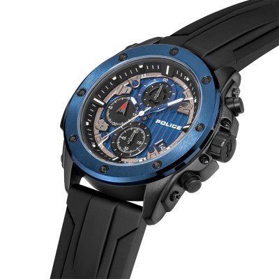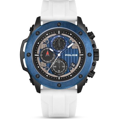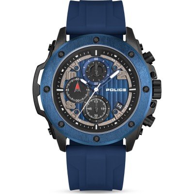 Diese Police Uhr hat ein Metalllegierung Gehäuse mit einem Durchmesser von 50 mm und ist mit einem Armband aus Kautschuk versehen. In der Uhr arbeitet ein Sunon Uhrwerk. Das Glas der Uhr besteht aus Mineral - Glas.