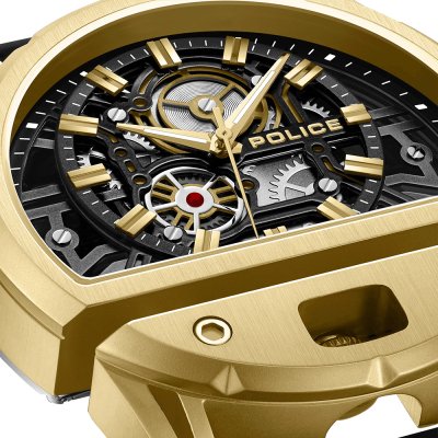 Diese Police Uhr hat ein Edelstahl Gehäuse mit einem Durchmesser von 46 mm und ist mit einem Armband aus Kautschuk versehen. In der Uhr arbeitet ein Miyota Uhrwerk. Das Glas der Uhr besteht aus Mineral - Glas.