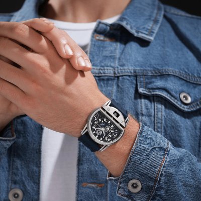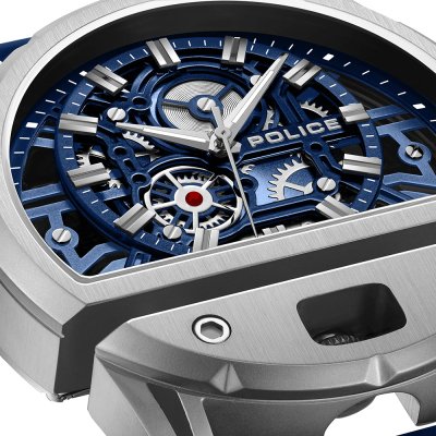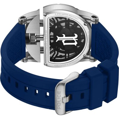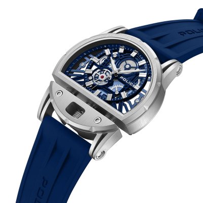 Diese Police Uhr hat ein Edelstahl Gehäuse mit einem Durchmesser von 46 mm und ist mit einem Armband aus Kautschuk versehen. In der Uhr arbeitet ein Miyota Uhrwerk. Das Glas der Uhr besteht aus Mineral - Glas.