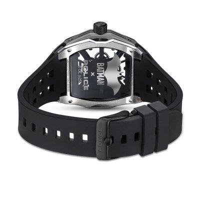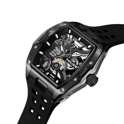 Diese Police Uhr hat ein Edelstahl Gehäuse mit einem Durchmesser von 44.5 mm und ist mit einem Armband aus Kautschuk versehen. In der Uhr arbeitet ein Seiko Instruments Inc. Uhrwerk. Das Glas der Uhr besteht aus Mineral - Glas.