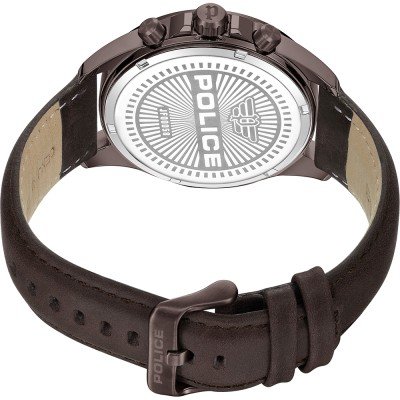 Diese Police Uhr hat ein Edelstahl Gehäuse mit einem Durchmesser von 45 mm und ist mit einem Armband aus Leder versehen. In der Uhr arbeitet ein Seiko Instruments Inc. Uhrwerk. Das Glas der Uhr besteht aus Mineral - Glas.