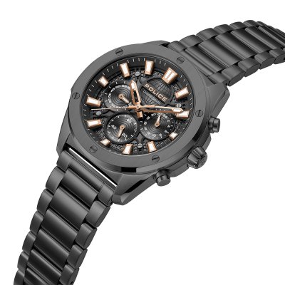 Diese Police Uhr hat ein Edelstahl Gehäuse mit einem Durchmesser von 43 mm und ist mit einem Armband aus Edelstahl versehen. In der Uhr arbeitet ein Seiko Instruments Inc. Uhrwerk. Das Glas der Uhr besteht aus Mineral - Glas.