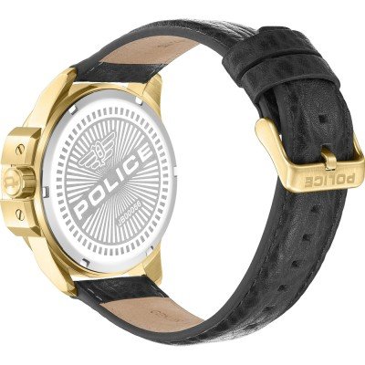 Diese Police Uhr hat ein Edelstahl Gehäuse mit einem Durchmesser von 45 mm und ist mit einem Armband aus Leder versehen. In der Uhr arbeitet ein Seiko Instruments Inc. Uhrwerk. Das Glas der Uhr besteht aus Mineral - Glas.