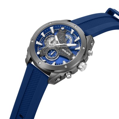 Diese Police Uhr hat ein Edelstahl Gehäuse mit einem Durchmesser von 45 mm und ist mit einem Armband aus Kautschuk versehen. In der Uhr arbeitet ein Seiko Instruments Inc. Uhrwerk. Das Glas der Uhr besteht aus Mineral - Glas.