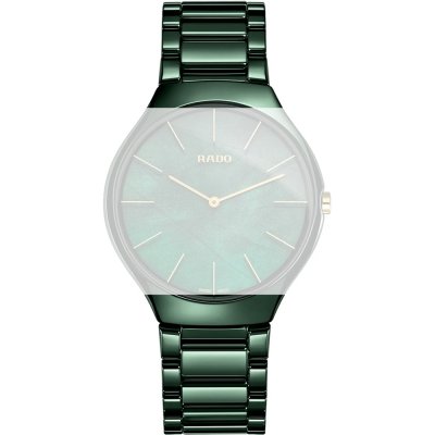 Dieses Rado Uhrarmband ist aus keramik gefertigt und wird mit stahlstifte an der Uhr befestigt. Das Band hat eine Breite von 20 mm und wird mit einer unsichtbare schmetterlingsschließe geschlossen. Das Uhrenarmband hat keine gerade Halterung, was bedeutet, dass dieses Band nur für die unten aufgeführten Uhren geeignet ist.