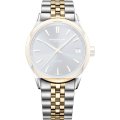 Diese jüngste Ergänzung der Raymond Weil Freelancer Linie verbindet klassische Eleganz mit moderner Raffinesse. Die Uhr verfügt über ein hauseigenes mechanisches Uhrwerk mit Automatikaufzug und einer Gangreserve von 41 Stunden (RW4420). Die Bandanstöße des 40-mm-Gehäuses sind gewölbt, so dass die Uhr bequem am Handgelenk sitzt, ebenso wie das Jubiläumsarmband mit Doppeldruck-Faltschließe. Die engeren Linien der Lünette und die Hochglanzpolitur sowie das Sonnenschliff-Zifferblatt verstärken die Tiefe und das dynamische Lichtspiel. Applizierte Indexe und raffinierte Zeiger mit weißer Super-LumiNova sorgen für optimale Ablesbarkeit, während eine dezente Minuterie auf der inneren Lünette das harmonische Design vervollständigt. Die verschraubte Krone ist mit einem RW-Monogramm geprägt, und durch den Saphirglasboden ist das Automatikwerk mit der W-förmigen Schwungmasse zu sehen - ein unverkennbares Markenzeichen von Raymond Weil.