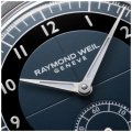 Diese Raymond Weil Uhr hat ein Edelstahl Gehäuse mit einem Durchmesser von 39.5 mm und ist mit einem Armband aus Leder versehen. In der Uhr arbeitet ein Sellita Uhrwerk. Das Glas der Uhr besteht aus Sapphir - Glas.