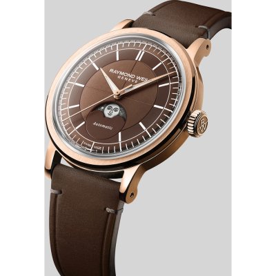 Diese Raymond Weil Uhr hat ein Edelstahl Gehäuse mit einem Durchmesser von 39.5 mm und ist mit einem Armband aus Leder versehen. In der Uhr arbeitet ein Sellita Uhrwerk. Das Glas der Uhr besteht aus Doppel antireflex Saphirglas - Glas.