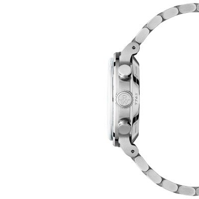 Das Herzstück des Millesime Tri-Compax Chronographen ist ein RW5030 (basierend auf dem SW510), ein Chronographenwerk mit Automatikaufzug und speziell angefertigtem W-förmigem Rotor. Es ist durch den Ausstellungsboden sichtbar, hat 25 Steine, schlägt mit 28.800 Umdrehungen pro Stunde und verfügt über eine Gangreserve von 62 Stunden, was Genauigkeit und Zuverlässigkeit garantiert. Die Uhr ist Teil der großen Millesime-Familie, die das Design der Jahrhundertmitte mit moderner Eleganz verbindet. Das Retro-Sektorzifferblatt ist mit einer geschlängelten Minuterie versehen, und der zentrale Bereich des Zifferblatts ist mit einer zarten vertikalen Bürste verziert. Zeiger und Indexe sind mit SuperLuminova beschichtet, um die Ablesbarkeit bei schlechten Lichtverhältnissen zu gewährleisten. Eine Tachymeterskala umgibt das Zifferblatt und verleiht ihm eine funktionale und sportlich-dynamische Note. Das 39-mm-Edelstahlgehäuse besteht aus einer Kombination von glatten und gebürsteten Oberflächen, die Retro-Charme, ein modernes Uhrwerk und die Liebe zum Detail miteinander verbinden und so zu einer hervorragenden Gesamtqualität beitragen. Mit der Millesime Tri-Compax hat Raymond Weil einen Zeitmesser geschaffen, der den Charme der Vergangenheit mit der Funktionalität der Gegenwart verbindet.
