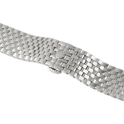 Dieses Raymond Weil Uhrarmband ist aus edelstahl gefertigt und wird mit druckstifte an der Uhr befestigt. Das Band hat eine Breite von 20 mm und wird mit einer schmetterlingsschließe mit druckknöpfen geschlossen. Das Uhrenarmband hat keine gerade Halterung, was bedeutet, dass dieses Band nur für die unten aufgeführten Uhren geeignet ist.