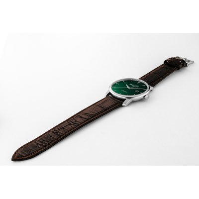 Diese Roamer Uhr hat ein Edelstahl Gehäuse mit einem Durchmesser von 40 mm und ist mit einem Armband aus Leder versehen. In der Uhr arbeitet ein Ronda Uhrwerk. Das Glas der Uhr besteht aus Sapphir - Glas.