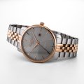 Diese Roamer Uhr hat ein Edelstahl Gehäuse mit einem Durchmesser von 40 mm und ist mit einem Armband aus Edelstahl versehen. In der Uhr arbeitet ein Ronda Uhrwerk. Das Glas der Uhr besteht aus Sapphir - Glas.