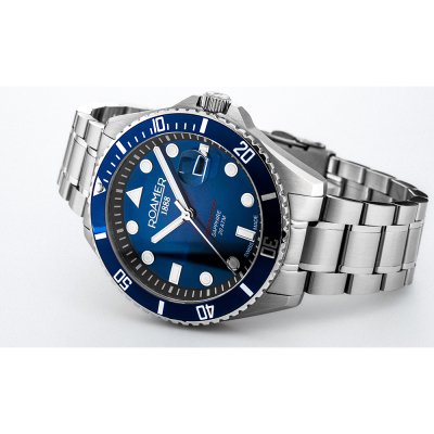 Diese Roamer Uhr hat ein Edelstahl Gehäuse mit einem Durchmesser von 43 mm und ist mit einem Armband aus Edelstahl versehen.