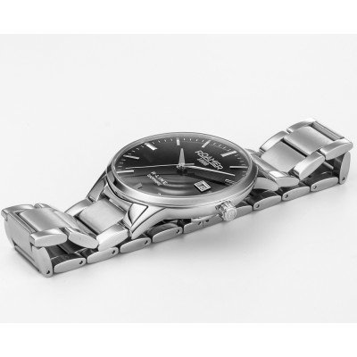 Diese Roamer Uhr hat ein Edelstahl Gehäuse mit einem Durchmesser von 43 mm und ist mit einem Armband aus Edelstahl versehen. In der Uhr arbeitet ein Ronda Uhrwerk. Das Glas der Uhr besteht aus Sapphir - Glas.
