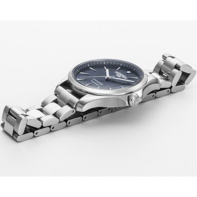 Diese Roamer Uhr hat ein Edelstahl Gehäuse mit einem Durchmesser von 36 mm und ist mit einem Armband aus Edelstahl versehen. In der Uhr arbeitet ein Ronda Uhrwerk. Das Glas der Uhr besteht aus Sapphir - Glas.