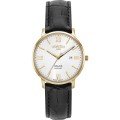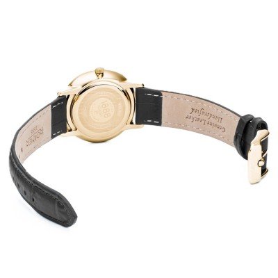 Diese Roamer Uhr hat ein Edelstahl Gehäuse mit einem Durchmesser von 32 mm und ist mit einem Armband aus Leder versehen. In der Uhr arbeitet ein Ronda Uhrwerk. Das Glas der Uhr besteht aus Sapphir - Glas.