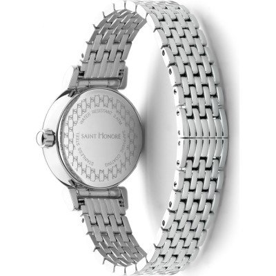 Diese Saint Honoré Uhr hat ein Edelstahl Gehäuse mit einem Durchmesser von 26 mm und ist mit einem Armband aus Edelstahl versehen. In der Uhr arbeitet ein Ronda Uhrwerk. Das Glas der Uhr besteht aus Mineral - Glas.