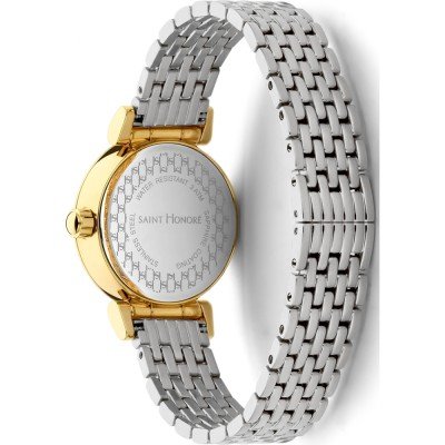 Diese Saint Honoré Uhr hat ein Edelstahl Gehäuse mit einem Durchmesser von 26 mm und ist mit einem Armband aus Edelstahl versehen. In der Uhr arbeitet ein Ronda Uhrwerk. Das Glas der Uhr besteht aus Mineral - Glas.
