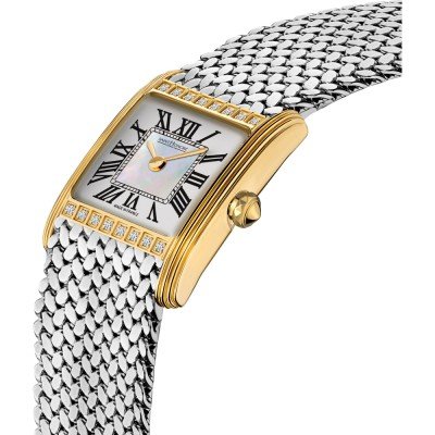 Diese Saint Honoré Uhr hat ein Edelstahl Gehäuse mit einem Durchmesser von 18 mm und ist mit einem Armband aus Edelstahl versehen. In der Uhr arbeitet ein Ronda Uhrwerk. Das Glas der Uhr besteht aus Mineral - Glas.