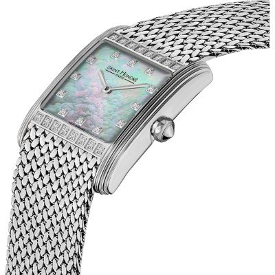 Diese Saint Honoré Uhr hat ein Edelstahl Gehäuse mit einem Durchmesser von 26 mm und ist mit einem Armband aus Edelstahl versehen. In der Uhr arbeitet ein Ronda Uhrwerk. Das Glas der Uhr besteht aus Saphirbeschichtetes Mineralglas - Glas.