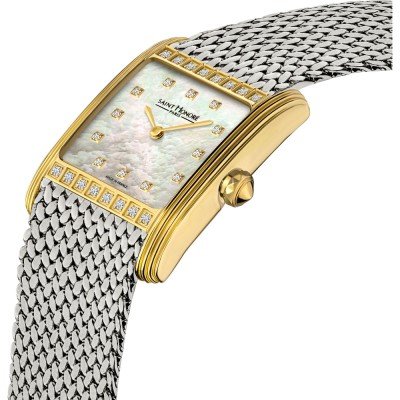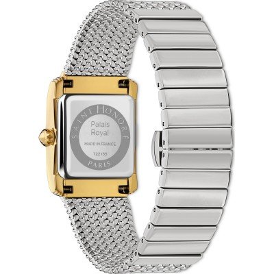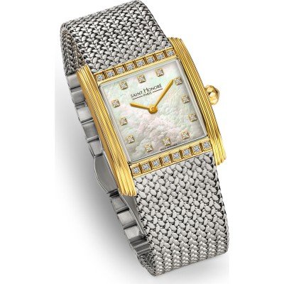 Diese Saint Honoré Uhr hat ein Edelstahl Gehäuse mit einem Durchmesser von 26 mm und ist mit einem Armband aus Edelstahl versehen. In der Uhr arbeitet ein Ronda Uhrwerk. Das Glas der Uhr besteht aus Saphirbeschichtetes Mineralglas - Glas.