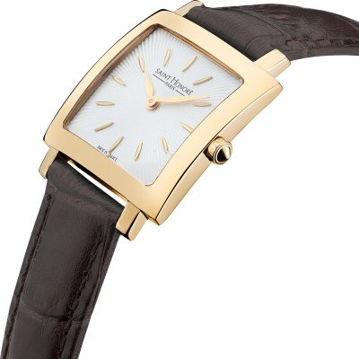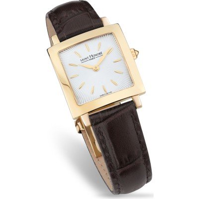 Diese Saint Honoré Uhr hat ein Edelstahl Gehäuse mit einem Durchmesser von 26 mm und ist mit einem Armband aus Leder versehen. In der Uhr arbeitet ein Ronda Uhrwerk. Das Glas der Uhr besteht aus Mineral - Glas.