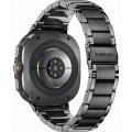 Diese Samsung Uhr hat ein Titan Gehäuse mit einem Durchmesser von 47 mm und ist mit einem Armband aus Edelstahl versehen.