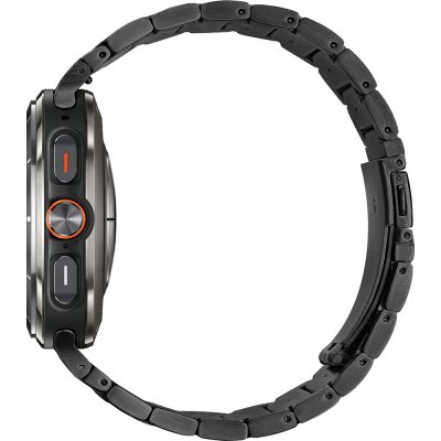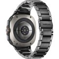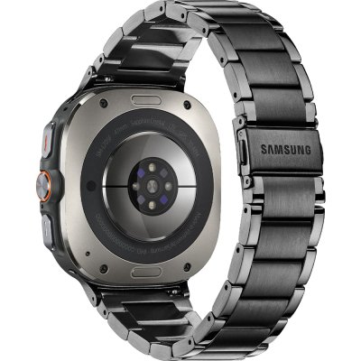 Diese Samsung Uhr hat ein Titan Gehäuse mit einem Durchmesser von 47 mm und ist mit einem Armband aus Edelstahl versehen.