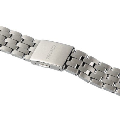 Dieses Seiko Uhrarmband ist aus edelstahl gefertigt und wird mit druckstifte an der Uhr befestigt. Das Band hat eine Breite von 21 mm und wird mit einer faltschließe mit Druckknöpfen geschlossen. Das Uhrenarmband hat keine gerade Halterung, was bedeutet, dass dieses Band nur für die unten aufgeführten Uhren geeignet ist.