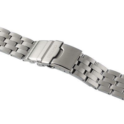Dieses Seiko Uhrarmband ist aus edelstahl gefertigt und wird mit druckstifte an der Uhr befestigt. Das Band hat eine Breite von 20 mm und wird mit einer sicherheitsfaltschließe mit Druckknöpfen geschlossen. Das Uhrenarmband hat keine gerade Halterung, was bedeutet, dass dieses Band nur für die unten aufgeführten Uhren geeignet ist.