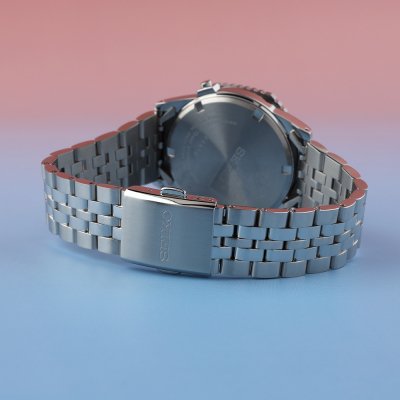 Diese Seiko Uhr hat ein Edelstahl Gehäuse mit einem Durchmesser von 37 mm und ist mit einem Armband aus Edelstahl versehen. In der Uhr arbeitet ein Seiko Instruments Inc. Uhrwerk. Das Glas der Uhr besteht aus Hardlex Glas - Glas.