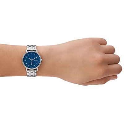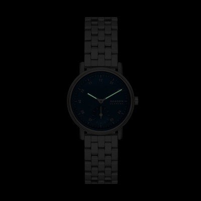 Diese Skagen Uhr hat ein Edelstahl Gehäuse mit einem Durchmesser von 32 mm und ist mit einem Armband aus Metall versehen. In der Uhr arbeitet ein Miyota Uhrwerk. Das Glas der Uhr besteht aus Mineral - Glas.
