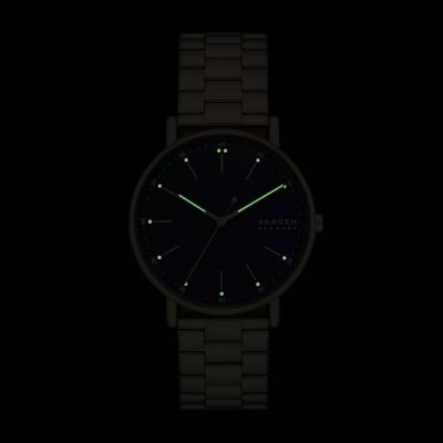 Diese Skagen Uhr hat ein Edelstahl Gehäuse mit einem Durchmesser von 40 mm und ist mit einem Armband aus Edelstahl versehen. In der Uhr arbeitet ein Seiko Instruments Inc. Uhrwerk. Das Glas der Uhr besteht aus Mineral - Glas.