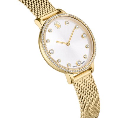 Diese Swarovski Uhr hat ein Edelstahl Gehäuse mit einem Durchmesser von 35 mm und ist mit einem Armband aus Edelstahl versehen. In der Uhr arbeitet ein Ronda Uhrwerk. Das Glas der Uhr besteht aus Mineral - Glas.