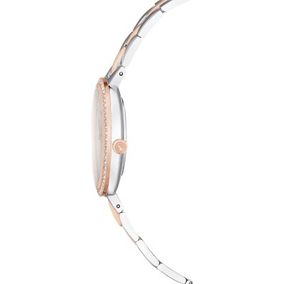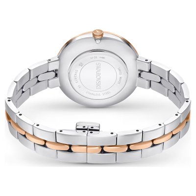 Diese Swarovski Uhr hat ein Edelstahl Gehäuse mit einem Durchmesser von 32 mm und ist mit einem Armband aus Edelstahl versehen. In der Uhr arbeitet ein Ronda Uhrwerk. Das Glas der Uhr besteht aus Mineral - Glas.