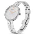 Diese Swarovski Uhr hat ein Edelstahl Gehäuse mit einem Durchmesser von 32 mm und ist mit einem Armband aus Edelstahl versehen. In der Uhr arbeitet ein Ronda Uhrwerk. Das Glas der Uhr besteht aus Mineral - Glas.