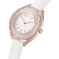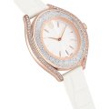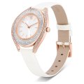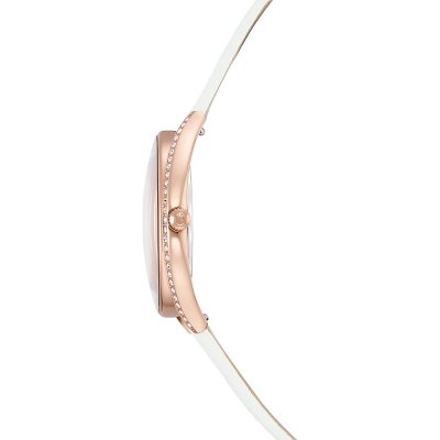Diese Swarovski Uhr hat ein Edelstahl Gehäuse mit einem Durchmesser von 35.5 mm und ist mit einem Armband aus Leder versehen. In der Uhr arbeitet ein Ronda Uhrwerk. Das Glas der Uhr besteht aus Mineral - Glas.