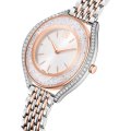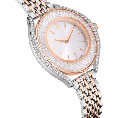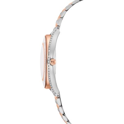 Diese Swarovski Uhr hat ein Edelstahl Gehäuse mit einem Durchmesser von 35.5 mm und ist mit einem Armband aus Edelstahl versehen. In der Uhr arbeitet ein Ronda Uhrwerk. Das Glas der Uhr besteht aus Mineral - Glas.