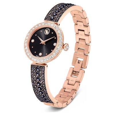 Diese Swarovski Uhr hat ein Edelstahl Gehäuse mit einem Durchmesser von 26 mm und ist mit einem Armband aus Edelstahl versehen. In der Uhr arbeitet ein Ronda Uhrwerk. Das Glas der Uhr besteht aus Mineral - Glas.