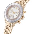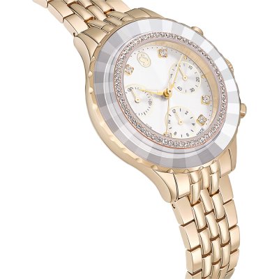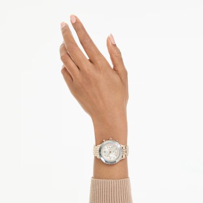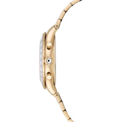 Diese Swarovski Uhr hat ein Edelstahl Gehäuse mit einem Durchmesser von 37 mm und ist mit einem Armband aus Edelstahl versehen. In der Uhr arbeitet ein Ronda Uhrwerk. Das Glas der Uhr besteht aus Mineral - Glas.