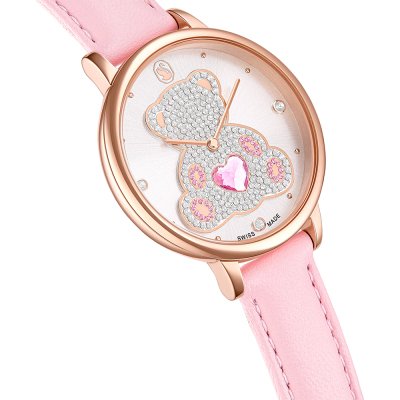 Diese Swarovski Uhr hat ein Edelstahl Gehäuse mit einem Durchmesser von 35 mm und ist mit einem Armband aus Leder versehen. In der Uhr arbeitet ein Ronda Uhrwerk. Das Glas der Uhr besteht aus Mineral - Glas.