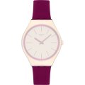 Diese Swatch Uhr hat ein Edelstahl Gehäuse mit einem Durchmesser von 38 mm und ist mit einem Armband aus Synthetisches Leder versehen. In der Uhr arbeitet ein ETA Uhrwerk. Das Glas der Uhr besteht aus Acryl - Glas.