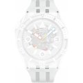 Dieses Swatch Uhrarmband ist aus silikon gefertigt und wird mit stahlstifte an der Uhr befestigt. Das Band hat eine Breite von 26 mm und wird mit einer dornschließe geschlossen. Das Uhrenarmband hat keine gerade Halterung, was bedeutet, dass dieses Band nur für die unten aufgeführten Uhren geeignet ist.