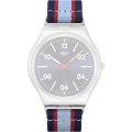 Dieses Swatch Uhrarmband ist aus textil gefertigt und wird mit stahlstifte an der Uhr befestigt. Das Band hat eine Breite von 20 mm und wird mit einer dornschließe geschlossen. Das Uhrenarmband hat keine gerade Halterung, was bedeutet, dass dieses Band nur für die unten aufgeführten Uhren geeignet ist.