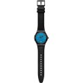 Diese Swatch Uhr hat ein Edelstahl Gehäuse mit einem Durchmesser von 42 mm und ist mit einem Armband aus Leder versehen. In der Uhr arbeitet ein ETA Uhrwerk. Das Glas der Uhr besteht aus Acryl - Glas.