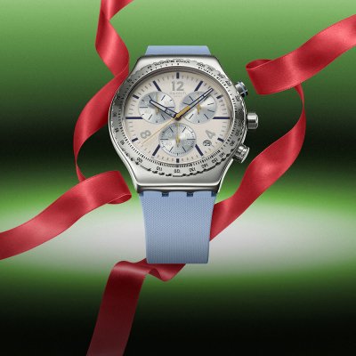 Diese Swatch Uhr hat ein Edelstahl Gehäuse mit einem Durchmesser von 43 mm und ist mit einem Armband aus Kautschuk versehen. In der Uhr arbeitet ein ETA Uhrwerk. Das Glas der Uhr besteht aus Acryl - Glas.