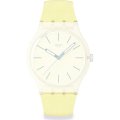 Dieses Swatch Uhrarmband ist aus silikon gefertigt und wird mit stahlstifte an der Uhr befestigt. Das Band hat eine Breite von 19.7 mm und wird mit einer dornschließe geschlossen. Das Uhrenarmband hat keine gerade Halterung, was bedeutet, dass dieses Band nur für die unten aufgeführten Uhren geeignet ist.