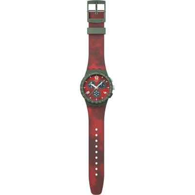 Diese Swatch Uhr hat ein Kunstharz Gehäuse mit einem Durchmesser von 42 mm und ist mit einem Armband aus Kautschuk versehen. In der Uhr arbeitet ein ETA Uhrwerk. Das Glas der Uhr besteht aus Acryl - Glas.