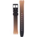 Dieses Swatch Uhrarmband ist aus silikon gefertigt und wird mit stahlstifte an der Uhr befestigt. Das Band hat eine Breite von 12 mm und wird mit einer dornschließe geschlossen. Das Uhrenarmband hat keine gerade Halterung, was bedeutet, dass dieses Band nur für die unten aufgeführten Uhren geeignet ist.